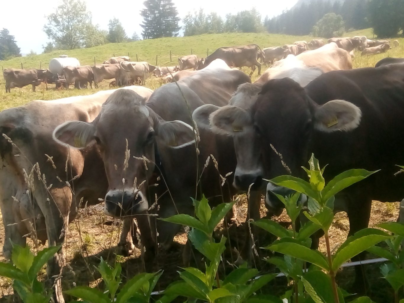 nachbars kühe weiden den ganzen tag auf der angrenzenden wiese. Am morgen und am abend kann man die kühe des nachbars beim aus- bzw. eintreiben beobachten.
